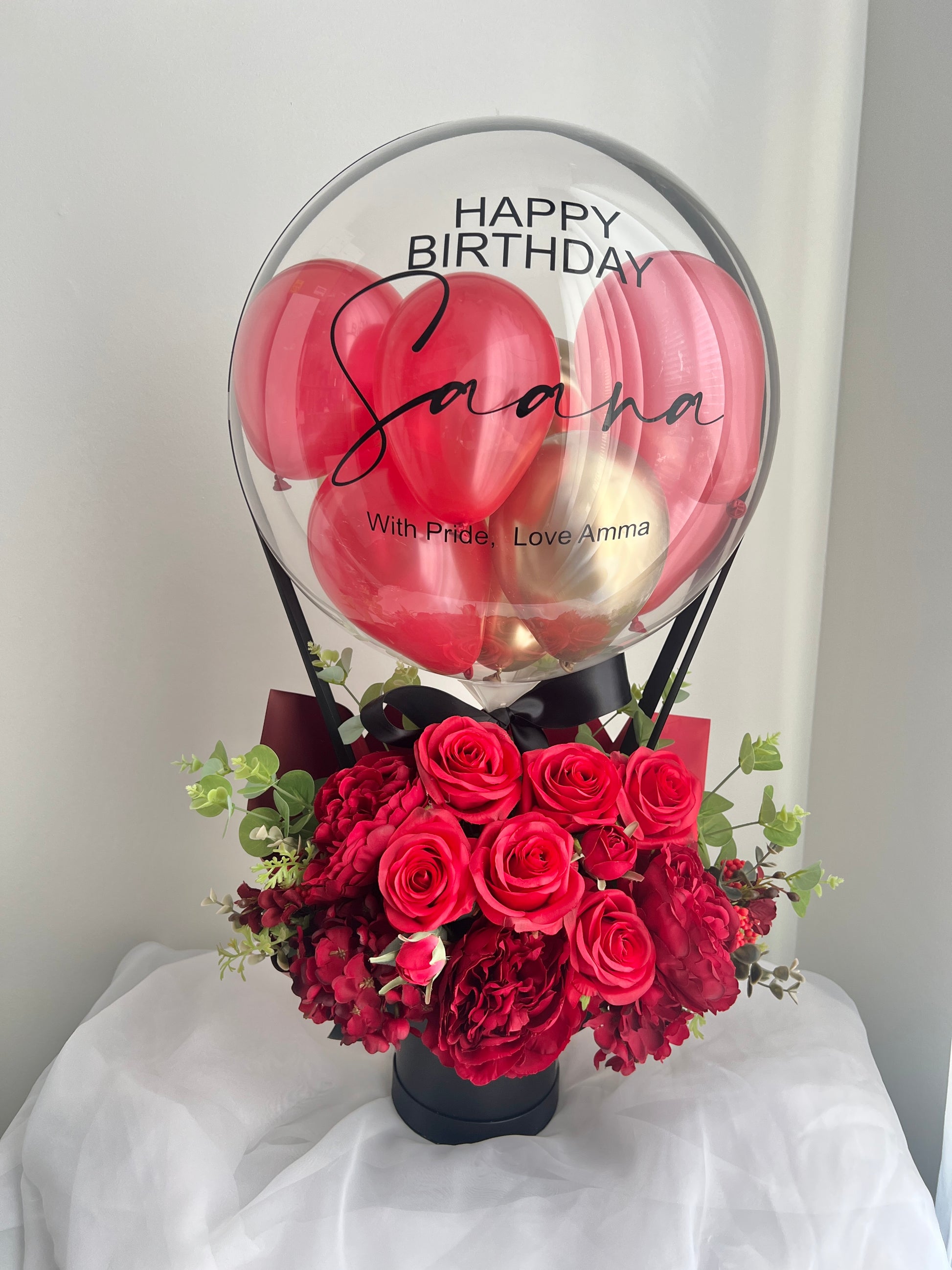 There is no better combination of gifts than balloons and flowers. The perfect gift for any occasion and sure to brighten up anyone’s day. Our Hot air balloon bouquets include: