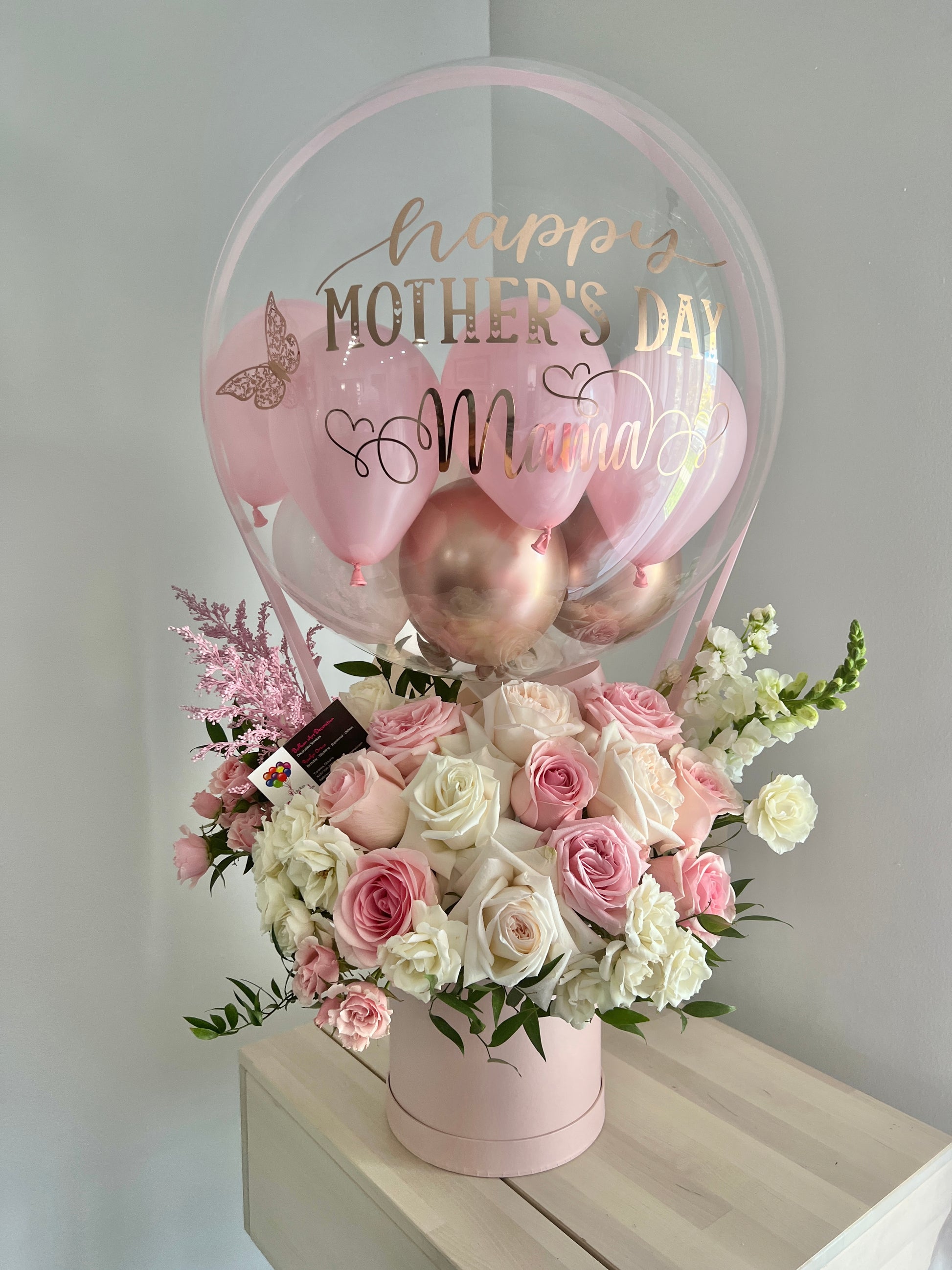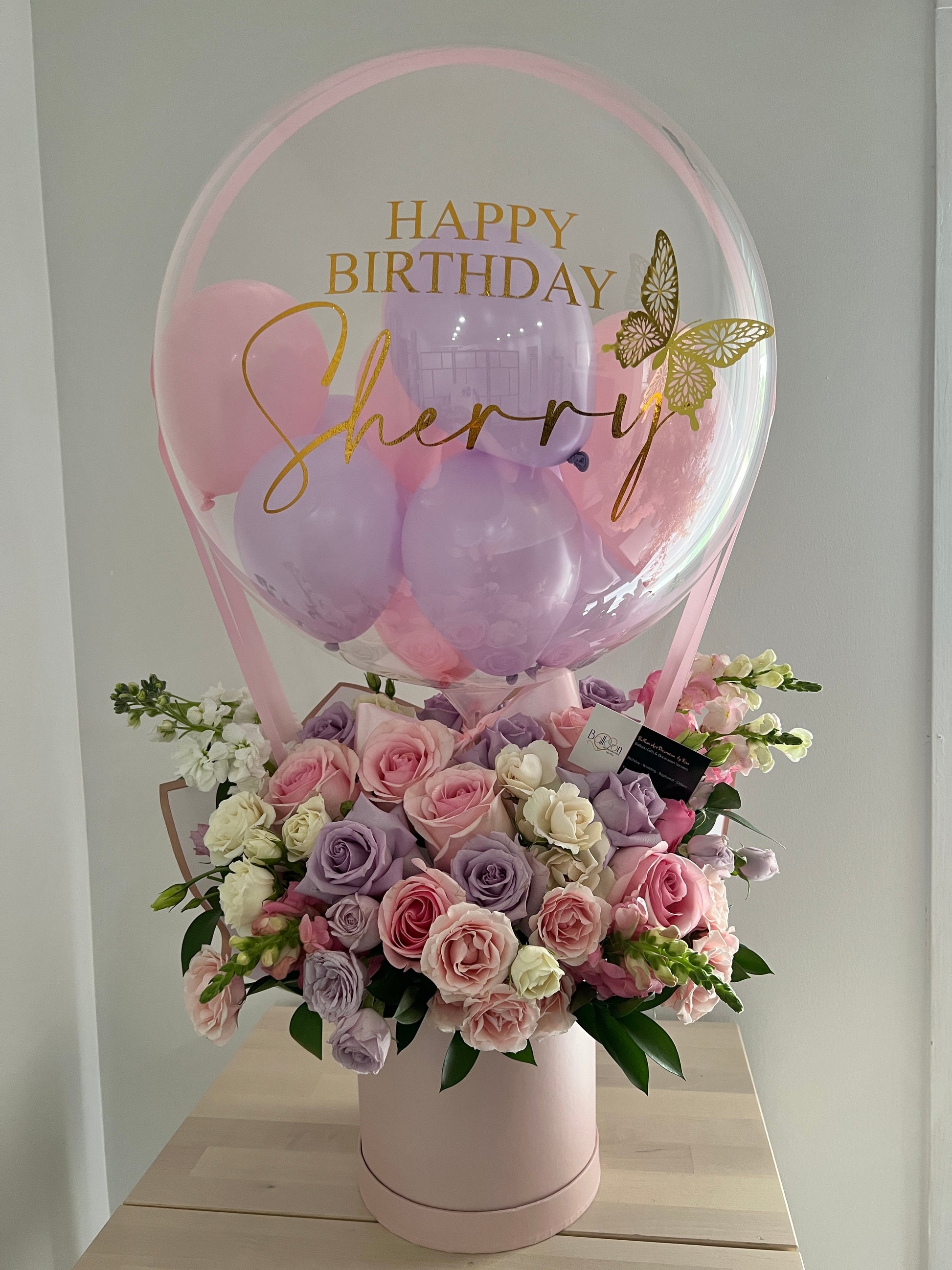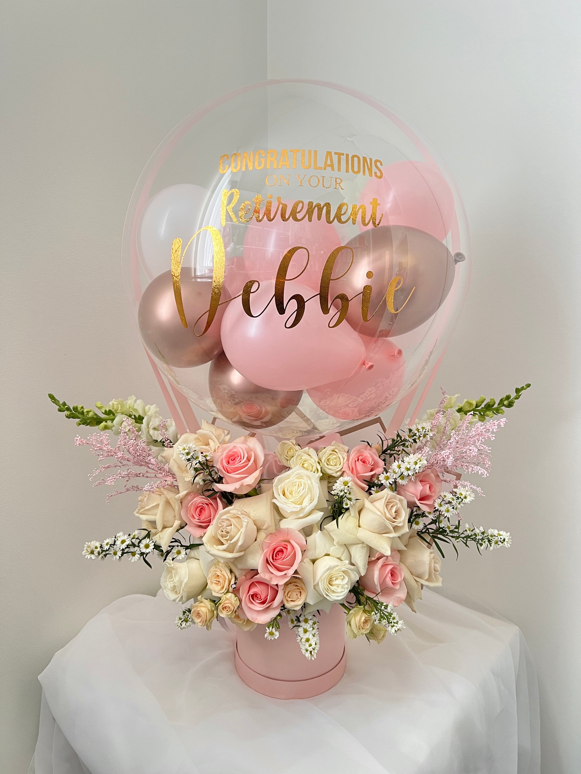 There is no better combination of gifts than balloons and flowers. The perfect gift for any occasion and sure to brighten up anyone’s day. Our Hot air balloon bouquets include: