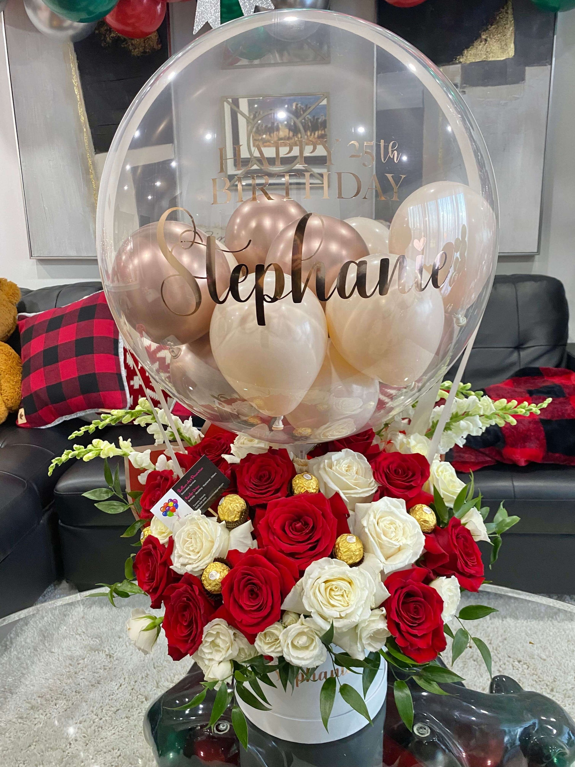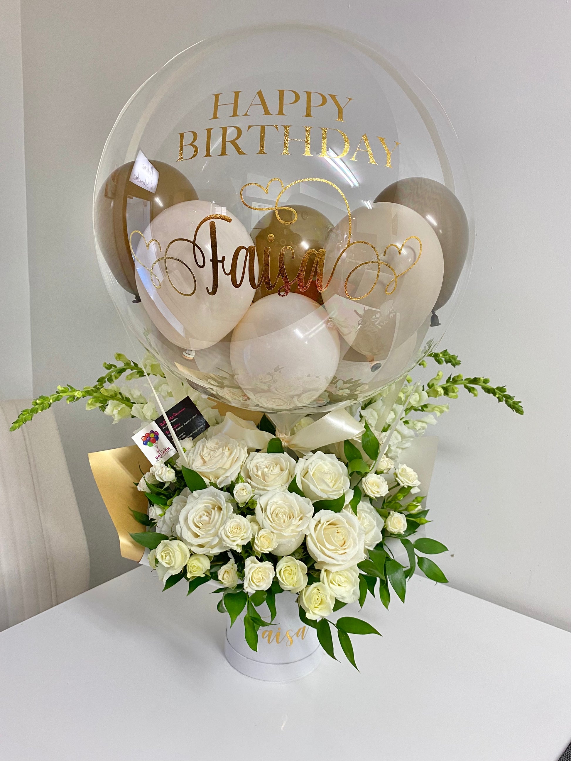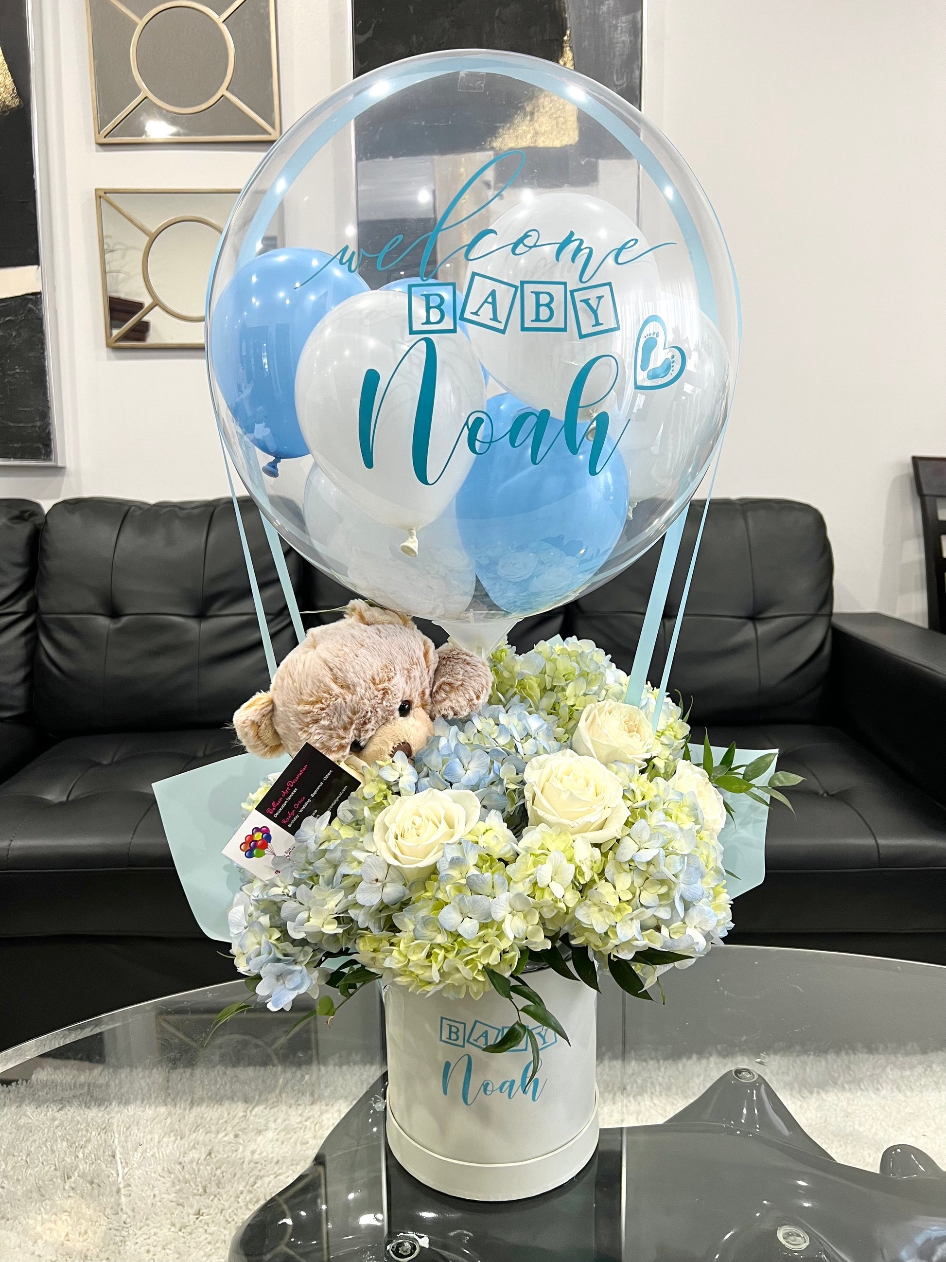 There is no better combination of gifts than balloons and flowers. The perfect gift for any occasion and sure to brighten up anyone’s day. Our Hot air balloon bouquets include:
