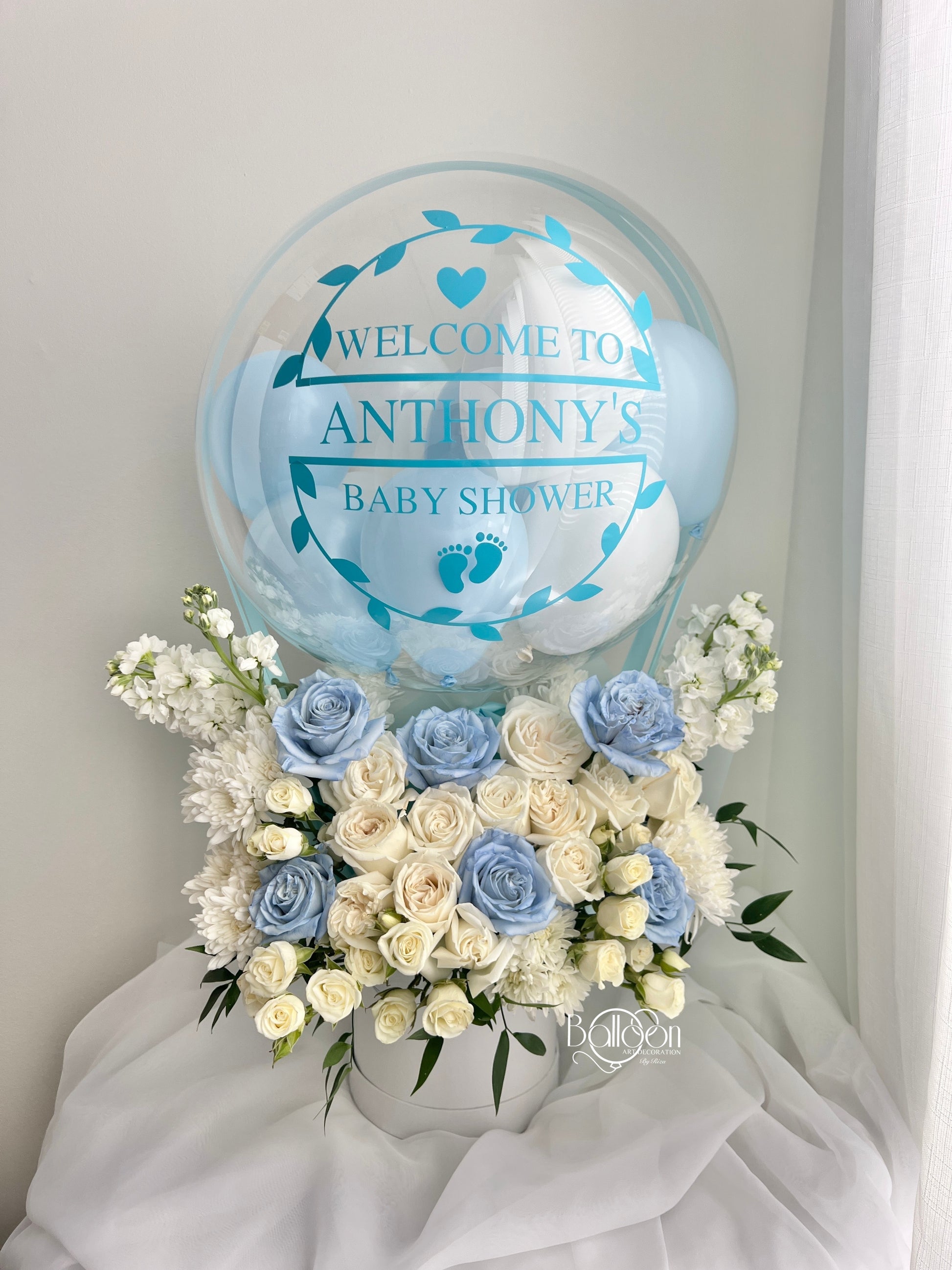 - Clear Balloon filled with mini balloons and custom writing