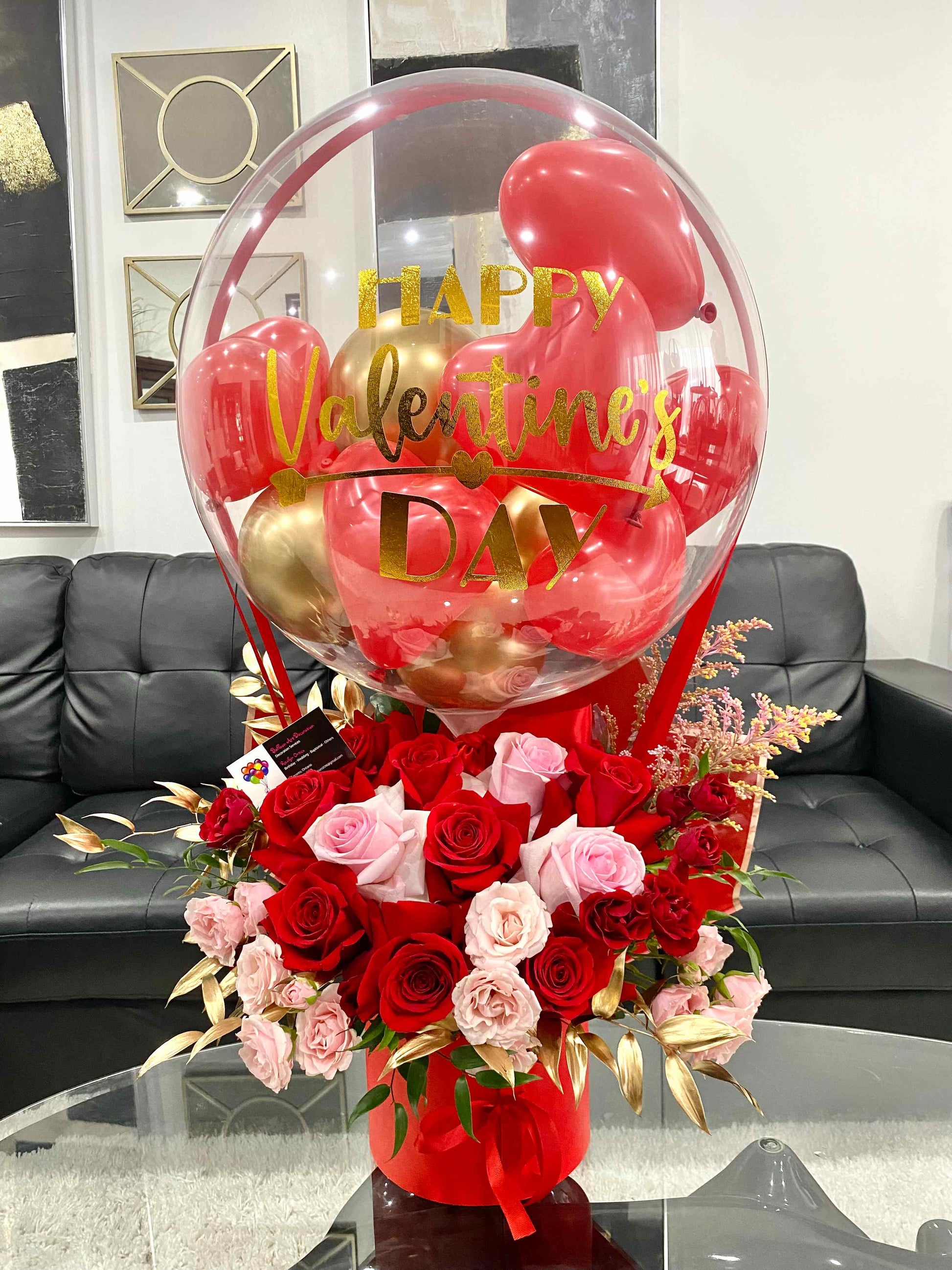 Hot air Balloon with fresh flowers and strawberry dipped chocolate